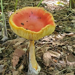 ルリハツタケ かなぁ 雨に濡れて傘の上はだいぶ色褪せていました。 でも裏側は目の覚める青🟦🟦🩵 本当に瑠璃色 すごい感動の色と形🩵 足の模様もまたGOOD❗️ 🍄🟫 今日はきのこの日🍄 きのこ祭り のタグ🏷️置き忘れてました♪ 🍄🟫🍄