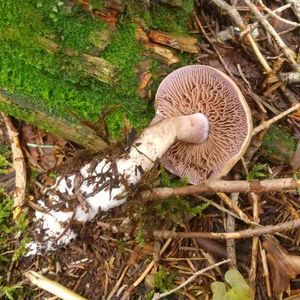 裏から見ると ひだは紫っぽくて 特徴的な形 このキノコは何ですか? ムレオオフウセンタケ? いや、適当に言ってみただけです😅