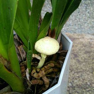 自宅の「きのこ」 五種類になりました💦 シンビジウムの鉢植えから、ひょっこり。