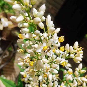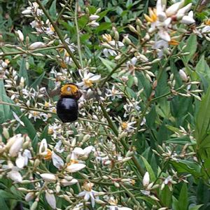 満開💠の南天にくまチャン飛び込む! 虫達は今稼ぎ時。晴れ間 をねらってせっせせっせ