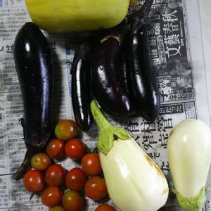 今朝の収穫です。 マクワウリは早いと思いましたが 葉が全体的に少しづつ黄色になって きたので試しに採りました。 うぶ毛?のトゲトゲか痛いので 摘果は手袋が必ずします。 ミニトマトやっとできました。 マクワとトマトは種から育てたので よく育ったネと褒めたいです。