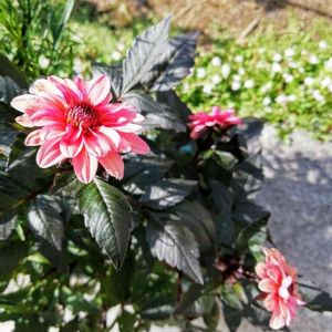 ❁. 。ダリア'ハミングブロンズ トレゾラ'。.❁ コンパクトな銅葉タイプのダリア🌸 小輪のダリアで 大きなダリアとは違った華やかさがあります💐 シックな銅葉と明るいピンクの コントラストが美しいですよね💕 株が綺麗に纏まるので、 寄せ植えなどにおすすめです◌̥*⃝ *育て方* 日当たり、水はけの良い場所を好みます☀️ 水やりは土の表面が乾いたらあげてください。