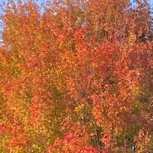 ☆紅葉☆ 16時30分撮影 裏庭から見える⛩️の 高い木に夕陽が当たっていて 紅葉🍁がすごくきれい❗️ 思わず、拡大で撮りましたー🥹