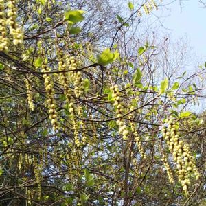 木の下の方からお花が?! 見上げても高い木で真下にいる為か、花も葉もよく分かりません。なんの木かしら? 想像が膨らみます🌿✨