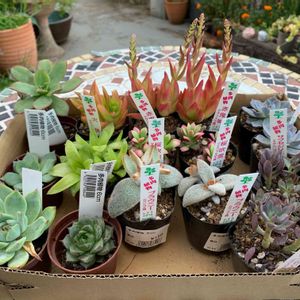 これは昨日、テニス🎾の帰りに寄った、HSで多肉狩り。 先週行った時は、もう徒長しているものばかりだったので、もしや今週は新たに仕入れてるのでは❓と寄ってみたら、まだ誰もてを付けてない仕入れたばかりの多肉が沢山‼️二つずつ買ってしまいました💦