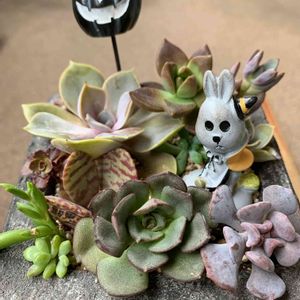 寄植えはようやく根付いて来た様子で、成長が見受けられます。良かった(^-^) 手前は、猫好きなので集めてみました。 入れられる寄植え早く作らないと!