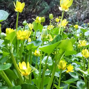 ヒメリュウキンカ お日様が出ないと平咲きに ならないんですね💛 口をつぼめている姫立金花も 控えめでいい感じです🍀