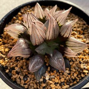 ハオルチア 西瓜寿です ミュータント系は前から気になっていたのですが、ヤフオクでお手頃価格で落札しました(*'▽'*) 透明感ヤベェェェェェェ((((;゚Д゚))))))) あと富士砂でマルチングをしてみました!