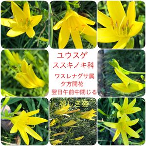 二年前 いつもなら帰ってしまう時間まで花散策を愉しんでしまった効用⁇ なるさんの投稿であの日の感動を思い出し投稿することに‼ 4時から咲くのを待っていた方がユウスゲの話を教えてくれました。 初めて見る美しい花姿にほれぼれ特に二色の雄蕊に魅せられてしまいました。 夕方咲き翌日の朝閉じる。 レモンイエローのラッパ状の花を上向きに咲かせる。 似ているヘメロカリスは欧米でユウスゲを園芸種化したものだそう。 この日も一期一会に感謝でした。 (o^―^o)ニコ 追記 訂正です この画像は2年前のものでそのときはススキノキ科となっていましたがツルボラン科が正しいようです。😅