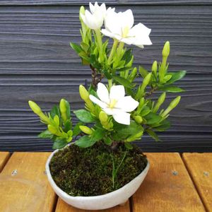 今日のお花💐クチナシ。 地元の盆栽、山野草展で見つけました😉 こんなに小さなサイズなのに、香りは一際目立っていて、直ぐにクチナシだと分かるくらい、自己アピール力高いです😃 さりげなく、左上には多肉ちゃん(๑˃̵ᴗ˂̵)