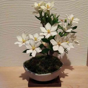 私のガーデニング熱に影響されて始めた旦那の盆栽。 梅が咲きました🌸クチナシも元気です。