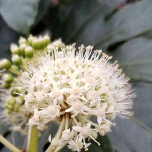 仕事からの帰り道で 初めてヤツデの花を見ました。