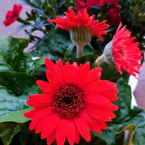 ベランダの真っ赤な「ガーベラ」🌿❤️ 少しいびつですが、頑張って咲いています 🤗💕 🏷真っ赤な火曜日 🏷あっ火曜日 に参加させていただきます🙇