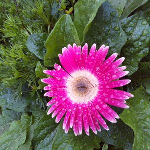 北側 寄せ植えのガーベラ ここのところの雨で涼しくなったからか、とっても大きい花が咲きました。