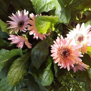 ペチュニアホイップマカロン レ・ミルティーユ とピンクのガーベラ ペチュニアはカリブラコアよりは復活が早いものの、やっぱり綺麗な形で全体をバランス良く咲かせるのがむずかしいです。どうしても偏ってしまいます。 皆さんどうしてあんなに綺麗に咲かせることができるんでしょう。 左のガーベラは3色が一緒に咲き揃うことがなかなかなく、順番に開花していきます。 今は中ぐらいピンクが開花中です。