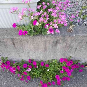 おはようございます😊🎵 道端歩き🚶♀️‼️ えっ👀⁉️零れ種から発芽したのか🤔? サフィニア😊か! ペチュニアかな😉👌 土もない路上に株を広げて綺麗に😍咲いてます🎵