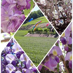 先日🎵お出掛けした 宇佐の千財農園❤️ いろいろ藤の花と😉 色とりどり❗白色 濃い紫、薄紫、ピンク 八重咲きの藤の花😊👌 見頃は今週末ですって✨