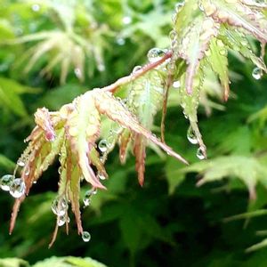 新緑の季節が間近😍 もみじ🍁の新芽🎵 雨に打たれて雫石が ポトリ💧😊👌
