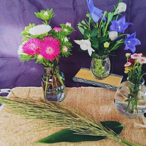 今日9月9日は 日本の五節句の1つ 重陽(ちょうよう)の節句 菊の花を飾ったり、菊の花びらを浮かべたお酒を楽しんだり 長寿や無病息災を祈願します 今日は👴の月命日 お寺さんは毎月7時半(7時半) お参り済んだので 昨日投稿した種まきアスター(エゾギク)の切り花 2番花の桔梗もカットして 秋っぽく飾ってみました 🏷重陽の節句
