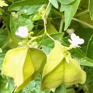 フウセンカズラの白い小さな。 袋が🟤になり種が出来てます!