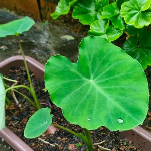 夕方雨が降りました☔️ 里芋の葉っぱに 💧が綺麗 ( ⁰̷̴͈꒳⁰̷̴͈ )