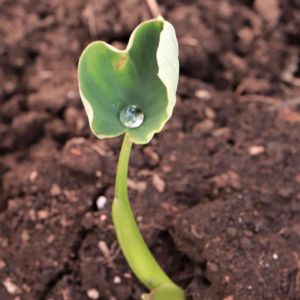 雨上がり🌈 主人の担当の里芋ですが、今朝雨戸を開けて目に飛び込んできた葉っぱとしずくがとってもきれいだったので。 値引き品の種芋だったそうで、時期が遅いせいか、植付けてから発芽まで少し時間がかかりまだ小さな葉っぱ2枚です。 でも、🌧️のあとは雨粒を乗せて、いっちょまえ🤭