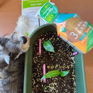 待ってました100%無農薬殺虫スプレー❣️ LINE登録キャンペーンに応募で当選🎉 動物に安心なものを使いたいですからね🤗 実生の「オーガスタ」と「タビビトノキ」 順調に成長👍6ヶ月🌱 この段階ではオーガスタの葉の幅が大きい 🏷️ワンワン祭り