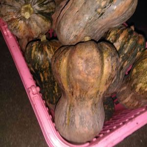 ひょうたんかぼちゃをいただきました。 勝手に交雑しているらしく毎年いろんな色と形になるそうです。 おもしろそうなので、種をとっておいて来年植えてみようと思います❤️
