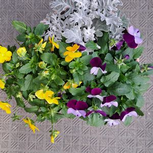 おはようございます😊 🩶シロタエギク 💛💜ビオラを 合わせてみました(^-^✿)