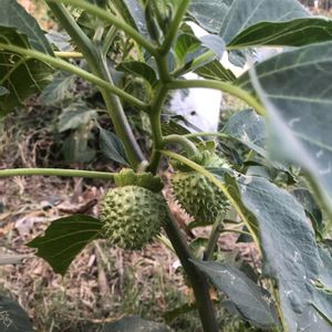 南インドのムンナール でよく自生してます。 オクラのような葉のつきかたですが、実はオナモミのようにトゲトゲです。 現地人曰く毒があるらしいです。 知ってる方いれば教えてください! よろしくお願いします。