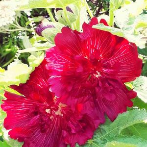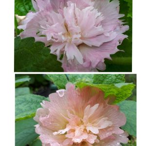 立ち葵❤️ 昨年半額の値段で購入した八重咲きの葵🎵 プランターに3色植えて😵そのまま放置してたら😊💕 今年も残った株から 咲きだしました🙆