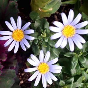 おはようございます 玄関先の寄せ植えの ブルーデイジの花💠 顔のように見えます