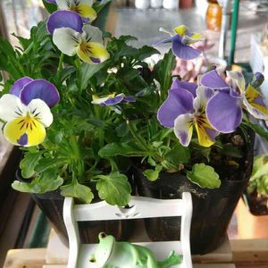 🏷️6日はカエルの日に参加します②🤣 コポたんにピッタリな椅子がありました😉👍✨ mamanyanさんに頂いたビオラちゃんがどんどん咲いています😘 蕾もまだたくさんあります😄 mamanyanさん、コポたん&ビオラちゃんありがとうございましたヾ(。・ω・)ノ