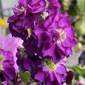 今日のお花 ストックです❣️ 昨日 ノノ 万両 部屋のヤブコウジ ヒヤシンス🪻 🪻🌼🪻🌼*・゜どの花も古くから 古くから親しまれていますネ ストックは昨日ベランダで… 🏷️今日のお花 🎶