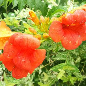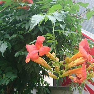 今日のお花。 ノーゼンカズラ。 数日前、偶然見つけました。 道内で見かけたのは初めて。 トランペット🎺形の赤い花が目を惹きます。