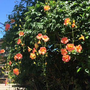 道沿いのお家 壁を伝って屋上まで 橙黄色のお花がいっぱい❣️❣️ 長居公園からの帰り道に見つけました 2019/6/10 撮影