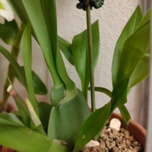 オンシジュームのバルブからバルブが出てきた? んんん? 明らかに丸いものが出てきました