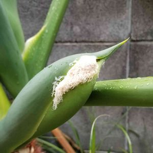 教えてください うちに来て5〜6年になるコウモリラン 大きくなったので昨年株分けしました 元気に育っているのですが葉っぱに水泡の様な物が付いていたので拭こうとしたら ベトベトする物です 葉っぱ2枚だけに付いていました これはなんでしょうか葉っぱについてる物