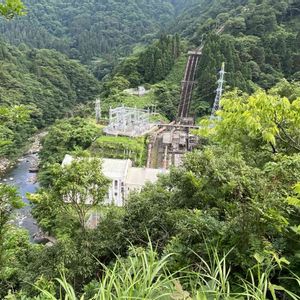 緑がいっぱい。ちょっと危ない崖の上からのビクビク撮影でした。したに見えるは、発電所。