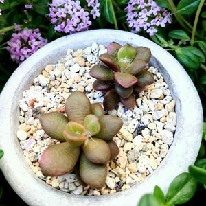 1枚の葉挿しから、約5年越しでここまで成長、かわいいお花が咲きました \(* ¨̮*)/\(*¨̮ *)/ 月美人さんの葉挿しはのんびりですね~、 名前の通りひっそりとなんて慎ましく咲いているんでしょう(*ฅ́˘ฅ̀*)