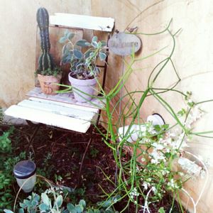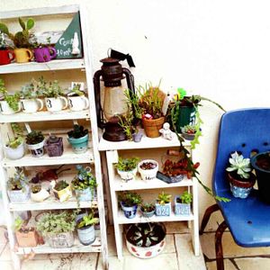 サボテンと、ミルクブッシュ以外は名前がはてな❓(笑)💦 昨日、椅子を白く塗り塗り😵💦 でも、前のこけごげしいのが、よかったなぁ。。。