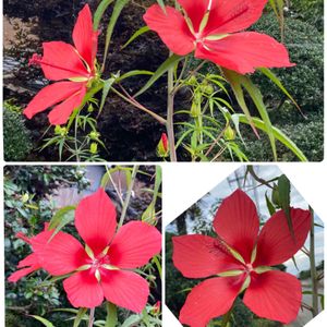✨モミジアオイ🌺✨ 大きくて〜赤くて〜綺麗なお花💕 お出かけ先の途中で… 綺麗に咲いていました☺️ 高いところで咲いていたので、 腕を伸ばしてパチリ📸💖