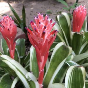 ピラミッド状の美しい花を咲かせる と言われてる 『ビルベルギア・ピラミダリス』 難しい名前の花です💐🌼🌸 花言葉が面白い🤣 🌸大きな財産を築ける将来🌸 パイナップル科 ツツアナナス属、ビルベルギア属 別名:ベニフデツツアナナス