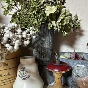 部屋の一部の今あるドライフラワー と集めた雑貨やお気に入りのポット🫖