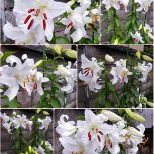 カサブランカ* 花言葉『祝福』『無垢』 降り続く雨にも負けず 次次と咲いてくれてます。 とても綺麗です。🥰