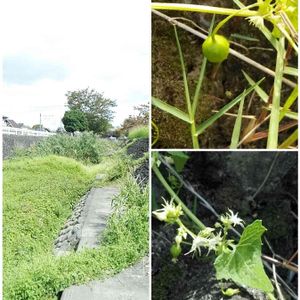 「天明新川で見つけた」 撮影📱2022.10.4 熊本市平成3丁目の 天明新川で撮影📱 アレチウリ🌼 小さな可愛い花🌼と 実が出来てたんやけど 一気に増加する様で 特定外来種に指定😅 天明新川も本来は 水が流れてるんやけど アレチウリ🌼が覆い 尽くしてる😅 ぜーんぶ駆除したら 綺麗な水が流れる 川が出現するはず🎵