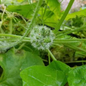こんにちは~☀️ "木曜モフモフ" 散策路沿いで繁殖するアレチウリに小さな可愛い花が咲き、茎にモフモフのヒゲが生えていました。 ウリ科の大型ツル性植物で、繁殖力が凄まじく特定外来生物に指定され、また日本生態学会によって侵略的外来種ワースト100に選定されています。 撮影日 2022.10.初旬