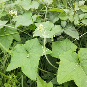 散歩の途中に見つけました。河原一面に繁殖しています。カボチャとかキュウリの葉に似てる感じ。なんの植物ですか?