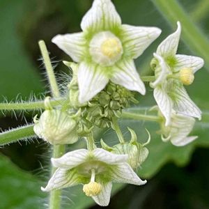 川の側でたくさん咲いていたクリーム色の星形のお花⭐️何でしょうか❓ GSのAI検索で北アメリカ原産の特定外来生物アレチウリと回答出ました😅 🏷️ちっちゃいものクラブ🏷️つる巻き月曜日に参加させて頂きます🥰 🔎アレチウリは北アメリカ原産の帰化植物で、輸入大豆に混入して広がったといわれ特定外来生物に指定されているそうです❣️