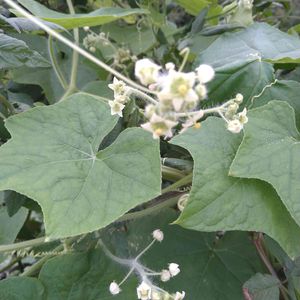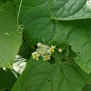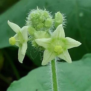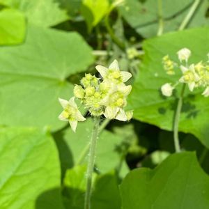 おはようございます🍀 河川敷で蔓延っているアレチウリです🤍💚 とても清楚で爽やかな美しいお花です✨ 雌雄異花で、雄花はうつむき加減で優しげで、雌花はくす玉のようで可愛いです😍 でも見た目とは大違いで繁殖力が凄まじく、特定外来生物に指定、及び日本の侵略的外来種ワースト100に選定されています😥 確かに、クズとアレチウリが物凄く蔓延っていて頷けました。 これは駆除するのも、かなり大変かと思います😣 私好みの美しいお花でとても残念ですಥ_ಥ コメントは閉じさせて頂きます。 見て頂き、ありがとうございます🤗💕 アレチウリ (荒れ地瓜) ウリ科 アレチウリ属 大型ツル性1年生草本 北米原産 本州以南で帰化 雌雄異花。雌花は淡緑色で直径約6㎜、球状に集合する。雄花は黄白色で直径約1㎝、総状に咲く。花期は8~9月で、花の後には白い棘に覆われた実がなる。繁殖力が凄まじく、1株当たり25,000個以上の種子をつけていた例も。果実は長さ1㎝ほどで長くて鋭い棘が密生し、金平糖のような形にかたまって結実する。実には苦さや渋みがあり、食用には適していない。 (Wikipedia 参考)